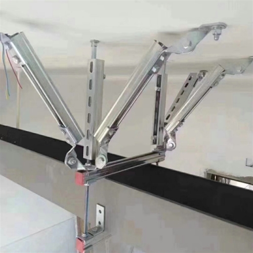 以矩形通風管道為例子,依據通風管道的造型設計,挑選配對的抗震支架開展安裝。安裝全過程包含:測量、化學螺栓定位、激光切割主起重設備安裝、承重梁安裝、拋撐安裝、加勁機器設備安裝。